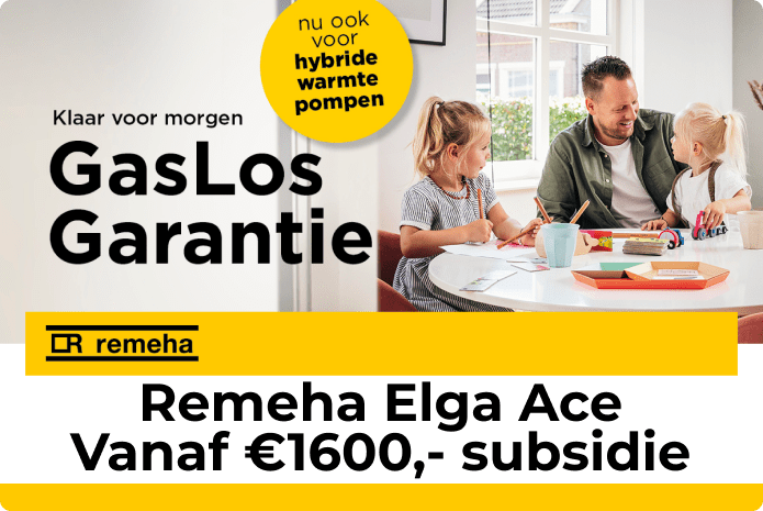 De Remeha Elga Ace en de Remeha Avanta Ace maken deel uit van de Remeha Gaslos Garantie. Op dit moment is er enorm veel aandacht voor de energietransitie en het duurzaam verwarmen van je woning. Hierdoor is het lastig om een juiste keuze te kunnen maken. Je wilt graag bijdragen aan een beter milieu, maar je wilt ook de juiste keus voor jouw situatie, woning en portemonnee maken. Met de Remeha Gaslos Garantie maak je nu de keuze en ben je klaar voor morgen. Moet jouw wijk in de toekomst van het gas af, dan neemt Remeha de warmtepomp en ketel van je terug of krijg je een gegarandeerde korting op een nieuw, duurzaam systeem afgesteld op jouw situatie! Meer weten? Lees hier alles over de Remeha Gaslos Garantie.